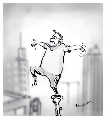 Buscando el Equilibrio,dibujo a pluma y tinta china " a la antigua "en papel couché,y un poco de photoshop para el fondo y los grises